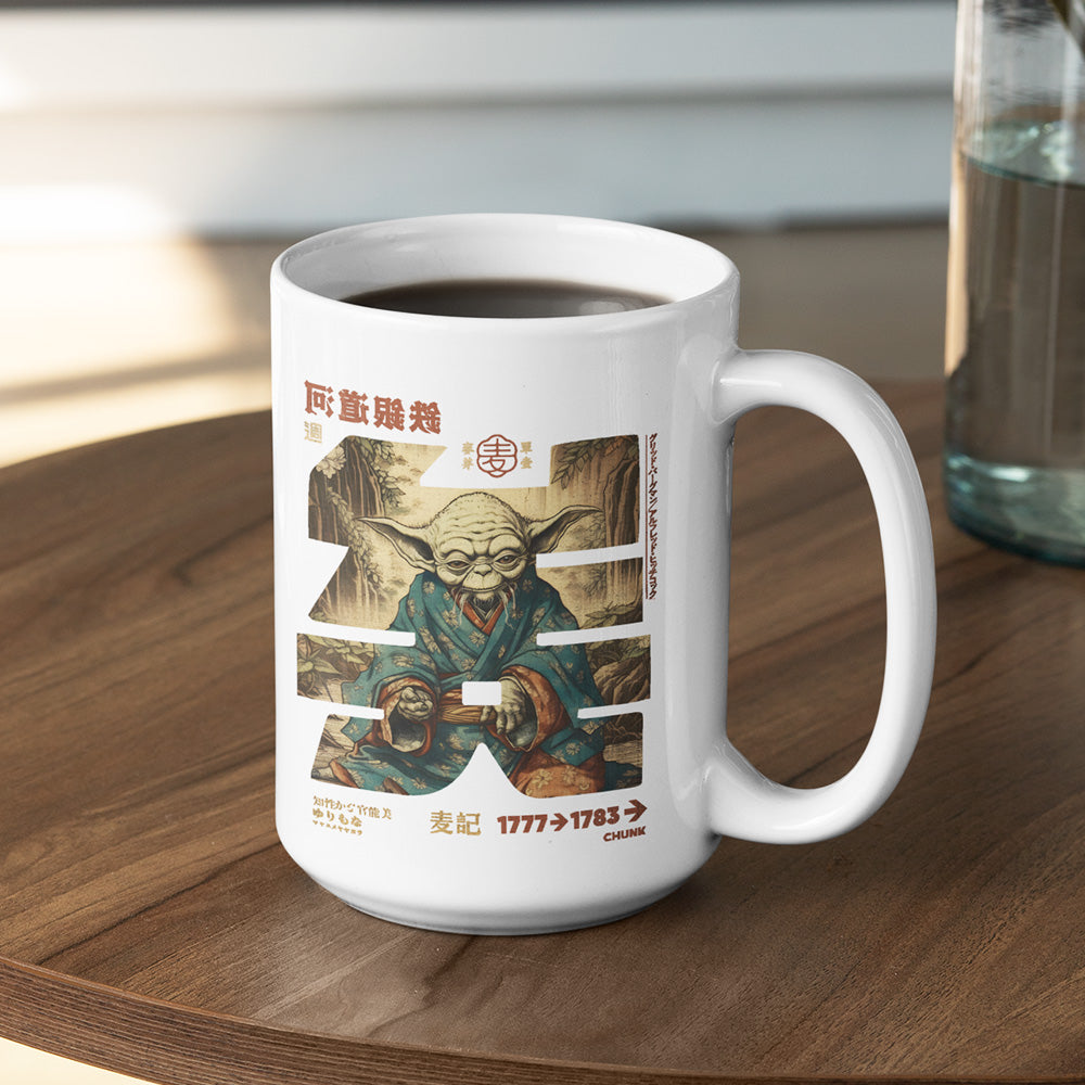 Our The Force Calligraphy Mug features a printed image around the whole mug.